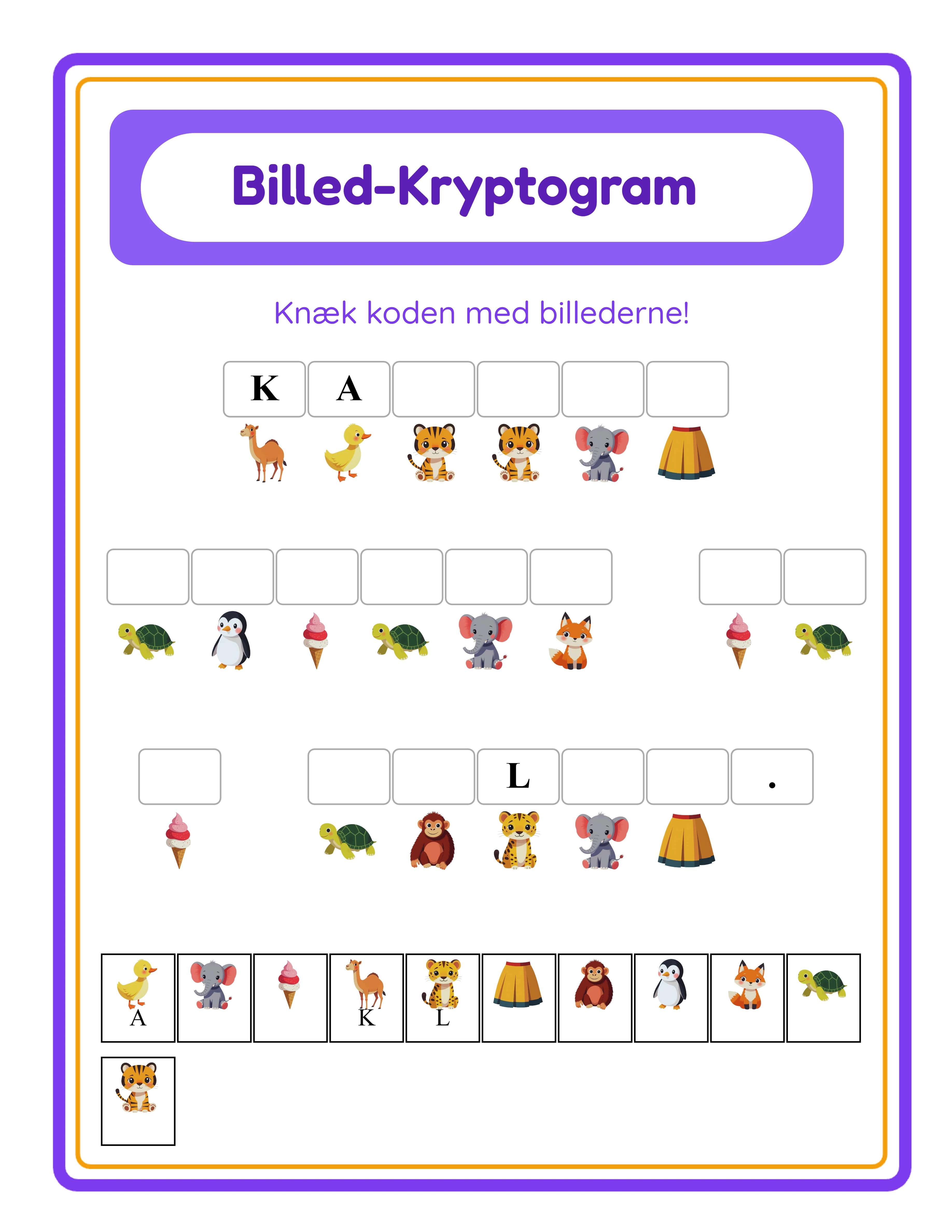 Spændende kryptogrammer der kombinerer billeder og bogstaver