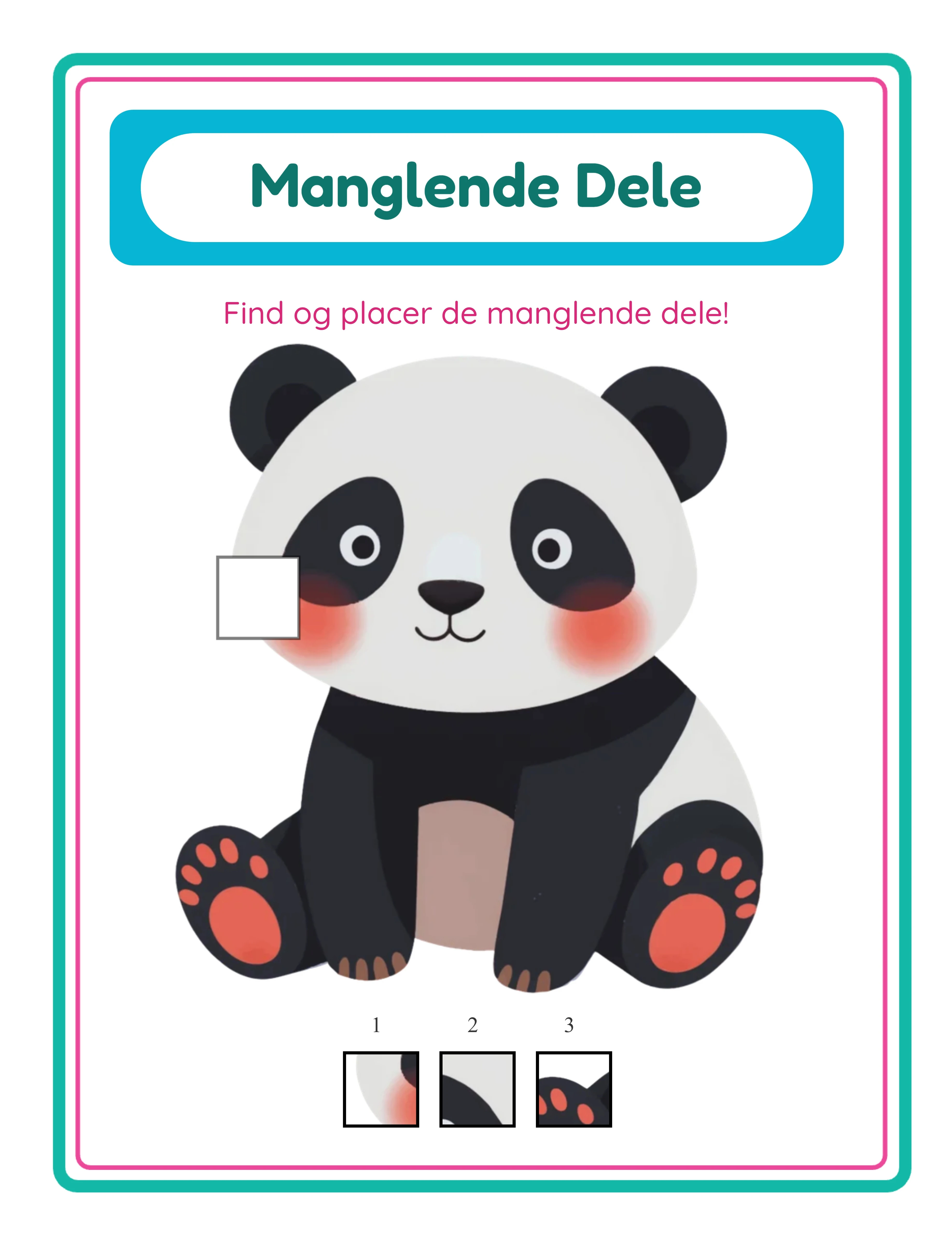 Generer puslespil-opgaver, hvor brikker klippes ud fra billeder, og børnene finder den korrekte nummererede brik — med 6 brikformer, 1–5 manglende brikker, 2–6 løsningsalternativer inkl. distraktorer, automatisk facit og visuelt design, der fungerer på alle sprog.