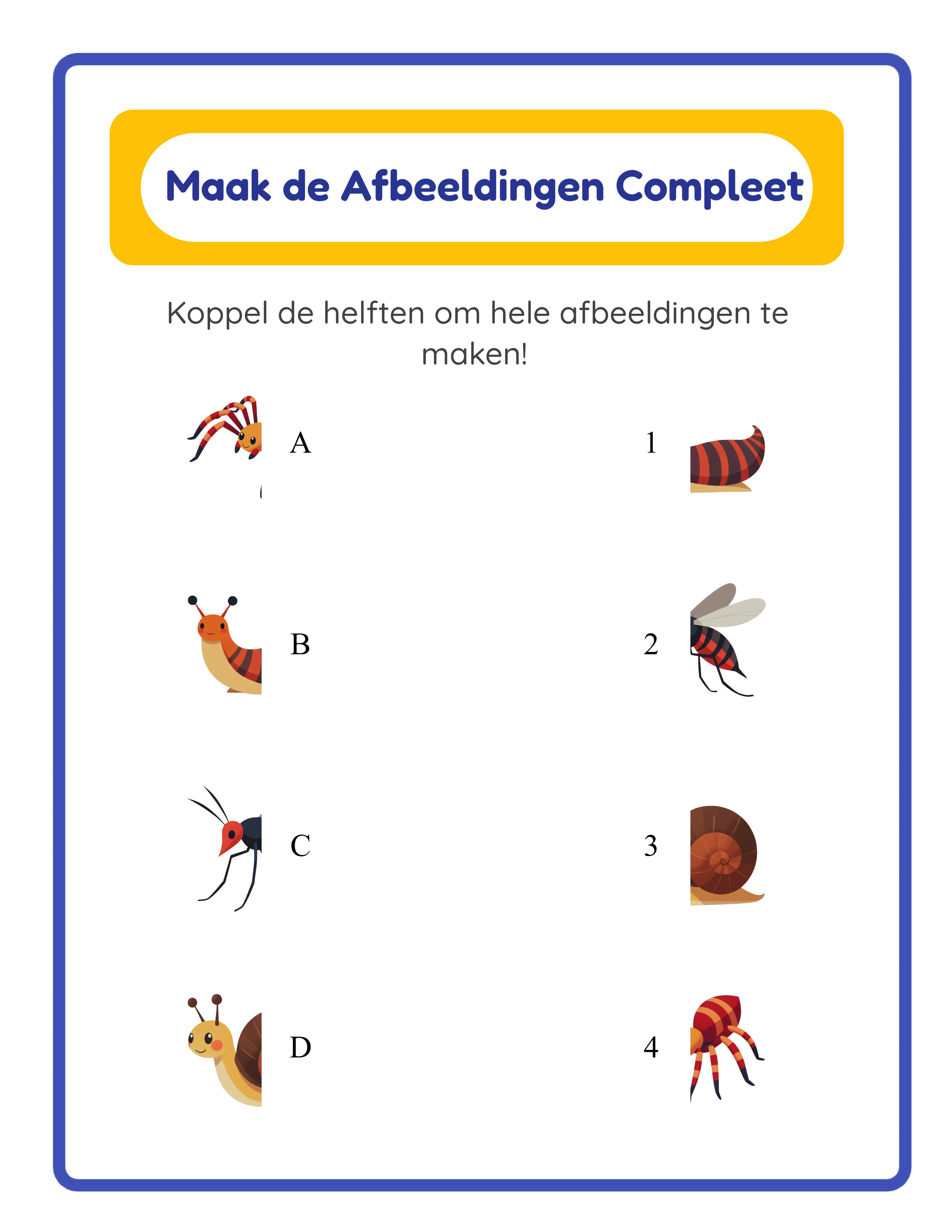 Dubbele-modus schaduw koppelen werkblad generator met pixelniveau silhouetcreatie, Maak het Compleet gesplitste-afbeelding helften met horizontale en verticale snijrichting, Fisher-Yates derangement dat triviale koppelingen garandeert uitsluit, automatisch gegenereerde antwoordbladen met letter-naar-nummer-labels, schakelbare A/B/C/D en 1/2/3/4 identificatoren, en 104 thematische beeldcollecties voor schaduw koppelen werkbladen die wereldwijd verkopen