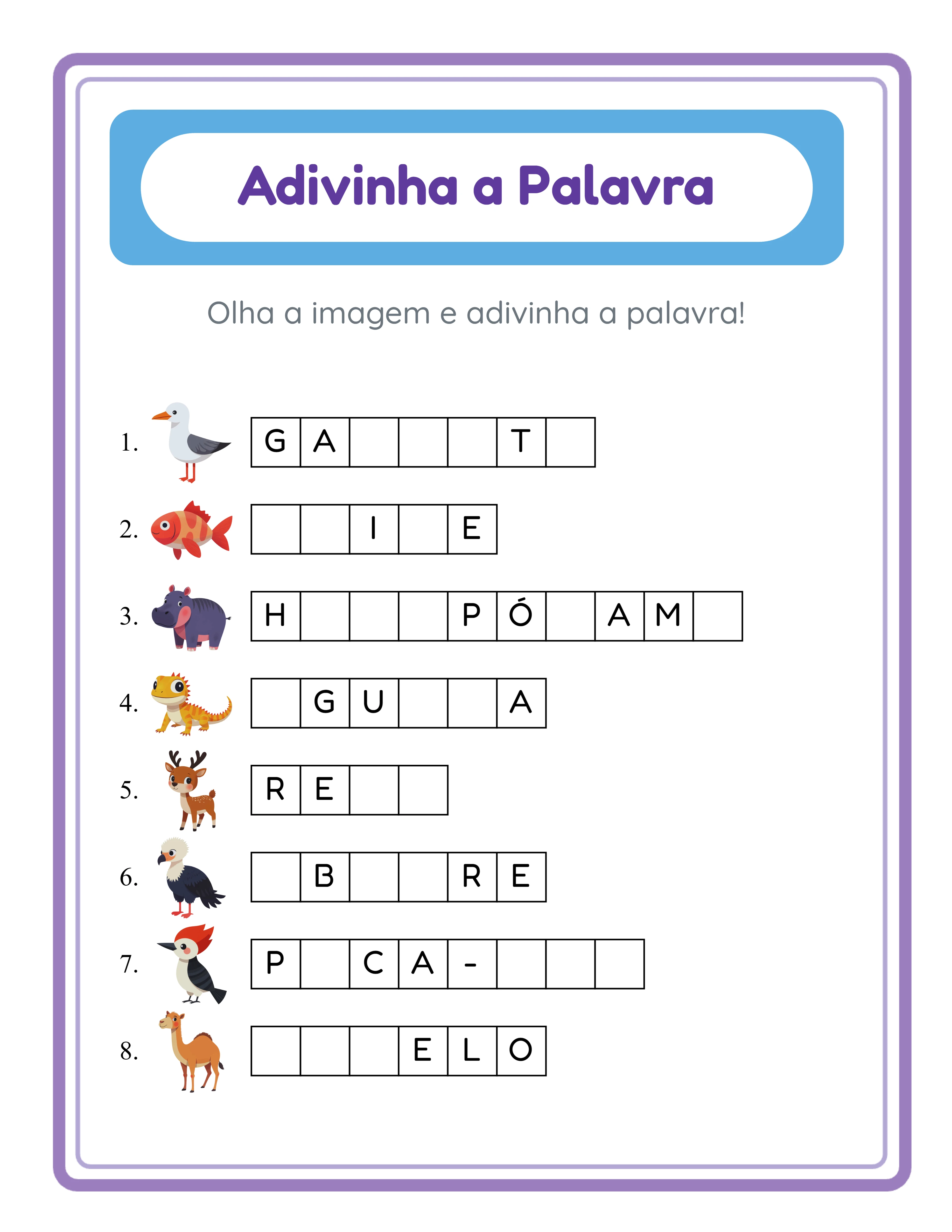 Cada adivinhação resolvida fortalece o vocabulário