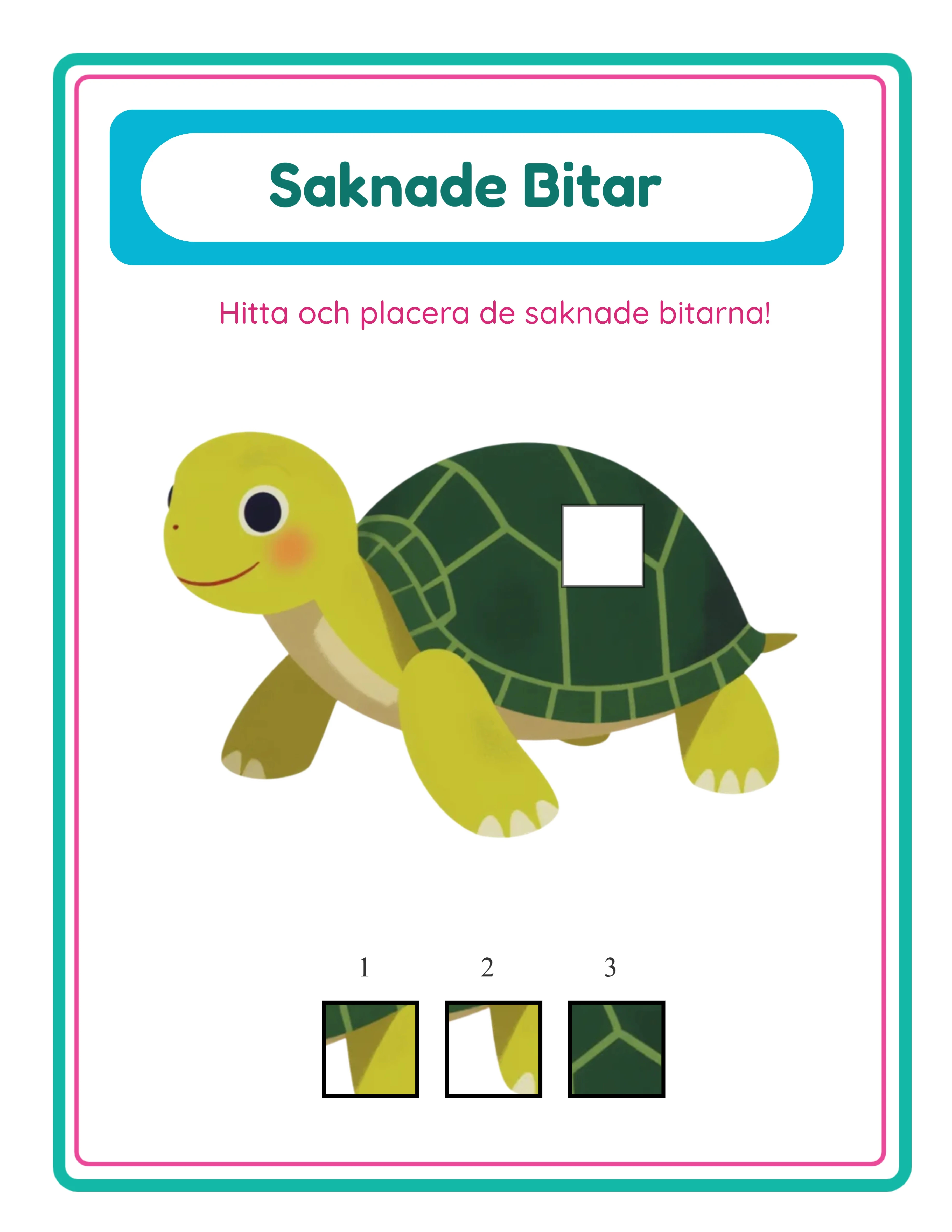 Pusselliknande saknade bitar-pussel med konfigurerbar svårighet