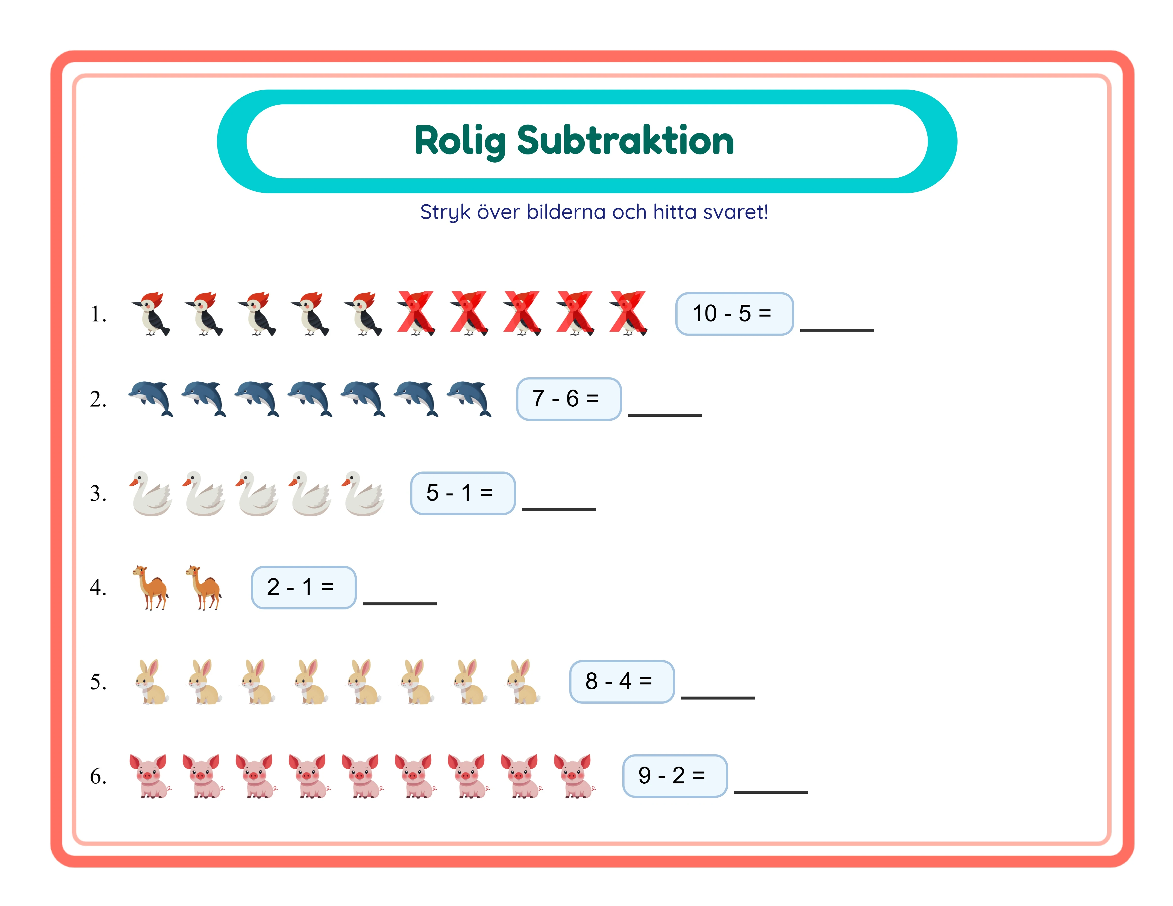 Skapa minusstycken med bilder för förskoleklass och lågstadiet — prova gratis med vattenmärke.