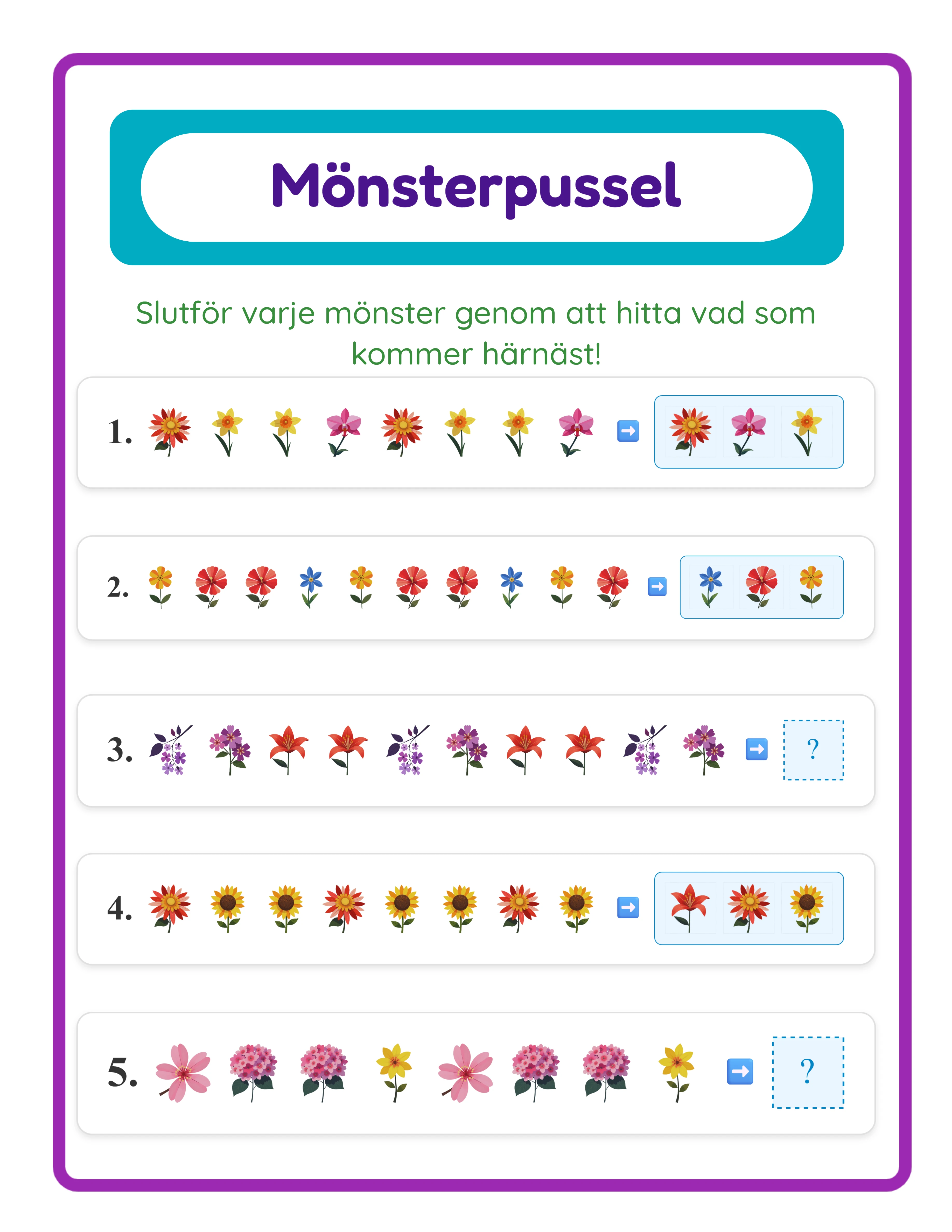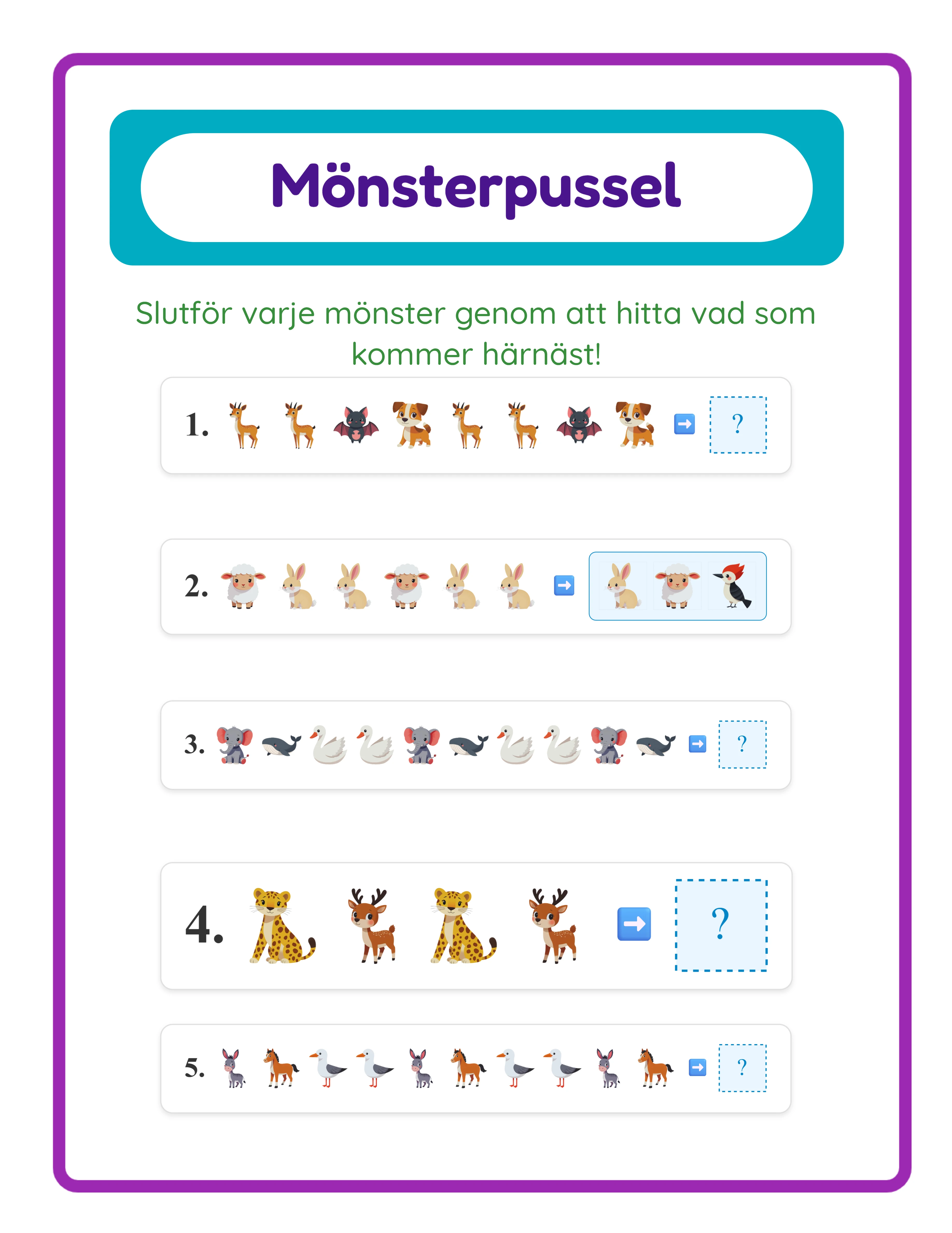 Hur du Skapar Mönsterigenkännings Arbetsblad med Nio Mönstertyper och Två Frågelägen — Steg-för-Steg Handledning